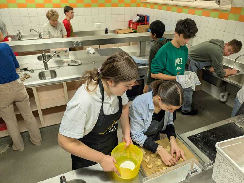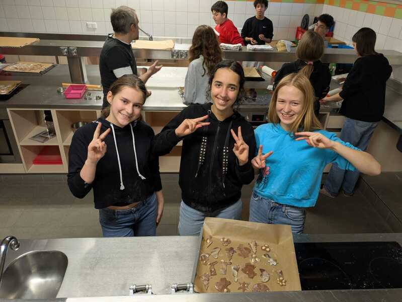 Die Schüler:innen backten fleißig Kekse für die große Winterfest-Aufführung am 17. Dezember in der Aula. Mit viel Begeisterung, Teamarbeit und einer guten Portion Mehl in der Luft entstanden köstliche Vanillekipferl, bunte Ausstechkekse und andere winterliche Leckereien.