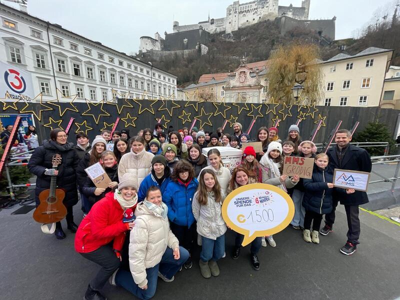 Mit großem Engagement beteiligten sich die Schüler:innen der MMS Grödig am diesjährigen Ö3 Weihnachtswunder. Durch verschiedene Aktionen, kreative Ideen und viel Einsatzbereitschaft konnte die beachtliche Spendensumme von 1.500 Euro gesammelt werden.Der Erlös wurde im Rahmen einer gemeinsamen Übergabe überreicht und kommt Familien in Not in Österreich zugute. Die Teilnahme am Ö3 Weihnachtswunder war für die Schüler:innen nicht nur eine wertvolle Erfahrung, sondern auch ein starkes Zeichen für Solidarität, Mitgefühl und Zusammenhalt. Die Schulgemeinschaft ist stolz auf dieses großartige soziale Engagement.